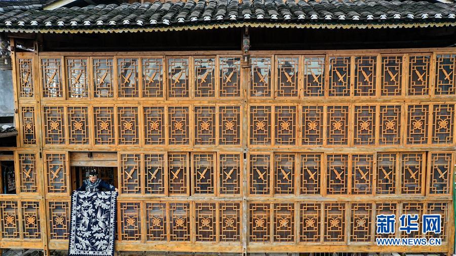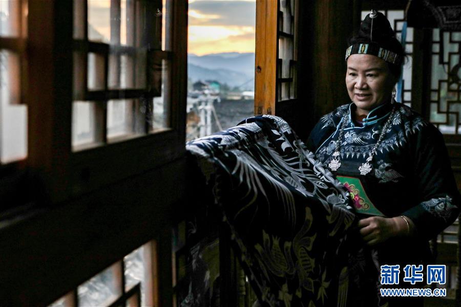 10月28日,楊芳在家中晾曬蠟染制品。新華社記者 歐東衢 攝