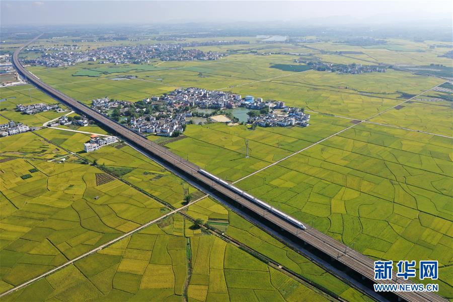 眼下,廣西賓陽縣古辣鎮(zhèn)大面積稻田進(jìn)入收獲期,一列列南來北往的動(dòng)車從稻田間飛馳而過,構(gòu)成一幅幅美麗的豐收圖畫。