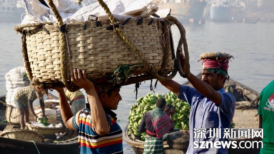 孟加拉人頭頂貨物的行走速度能達(dá)到相當(dāng)驚人的程度,有些是可以小跑的。李仁奇攝