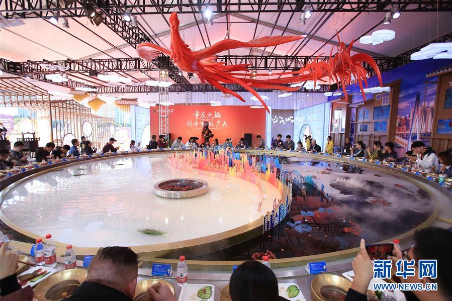 參觀者在第二屆進博會上體驗“天下第一大火鍋”試吃活動(11月8日攝)。新華社記者隋先凱攝