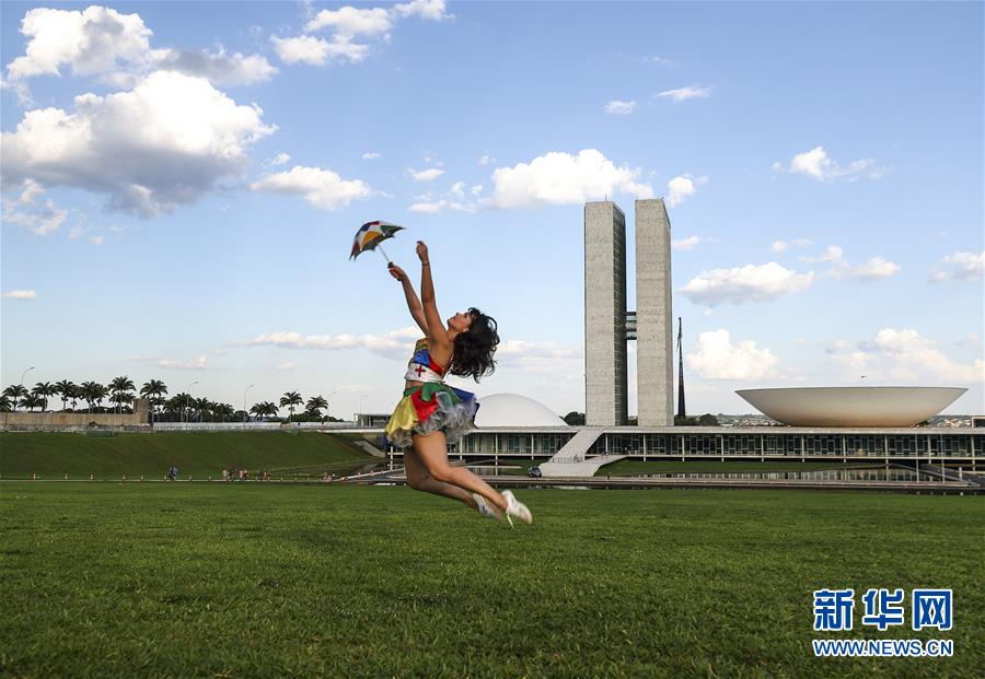 11月10日,一名女孩在巴西首都巴西利亞的國會前練習(xí)弗雷沃舞蹈。新華社記者 蘭紅光 攝