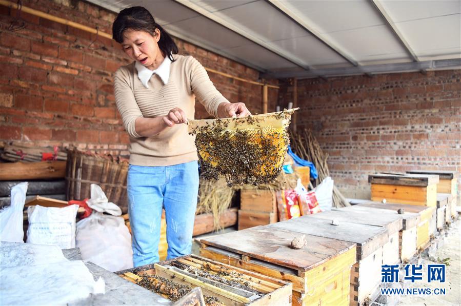 這是葉德華在查看蜂蜜成色,準(zhǔn)備送檢(11月12日攝)。 葉德華是廣西陽朔縣楊堤鄉(xiāng)楊堤村村民,一家人的生計由她一人撐起,母親年邁,兒子年幼,家庭經(jīng)濟(jì)困難。 2017年起,葉德華在當(dāng)?shù)胤鲐毟刹亢宛B(yǎng)蜂協(xié)會的幫扶下開始發(fā)展蜜蜂特色養(yǎng)殖,從養(yǎng)殖8箱蜜蜂起步走上養(yǎng)蜂脫貧致富路。目前她的蜂蜜產(chǎn)品遠(yuǎn)銷上海、深圳、湖南等地,年收入近10萬元,不僅脫貧摘帽,還建起了兩層小樓。 目前,葉德華在努力學(xué)習(xí)電商銷售的同時,還積極向貧困戶傳授養(yǎng)蜂技能,爭取幫助更多人走上脫貧致富路。 新華社記者張愛林?jǐn)z