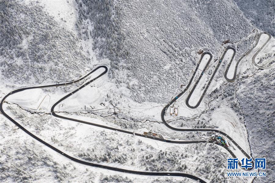 這是318國(guó)道剪子彎山段,大雪過(guò)后銀裝素裹(10月17日無(wú)人機(jī)拍攝)。新華社記者江宏景攝