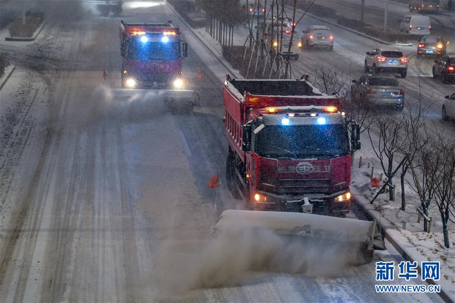 11月17日,一輛環(huán)衛(wèi)清雪車在作業(yè)。 新華社記者 顏麟蘊 攝