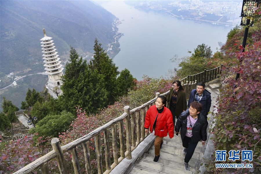 11月23日,游客在位于長江巫峽段的巫山文峰景區(qū)游覽。初冬時節(jié),位于重慶巫山縣境內(nèi)的長江巫峽段呈現(xiàn)出一江碧水東流、兩岸層林盡染的秀美景象。新華社記者王全超攝