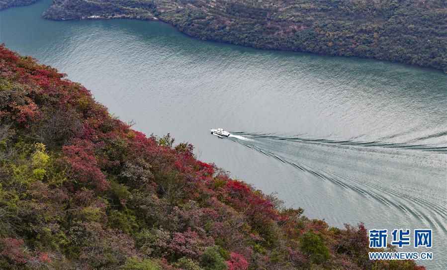 11月23日無人機(jī)拍攝的長江巫峽段一景。初冬時(shí)節(jié),位于重慶巫山縣境內(nèi)的長江巫峽段呈現(xiàn)出一江碧水東流、兩岸層林盡染的秀美景象。新華社記者王全超攝