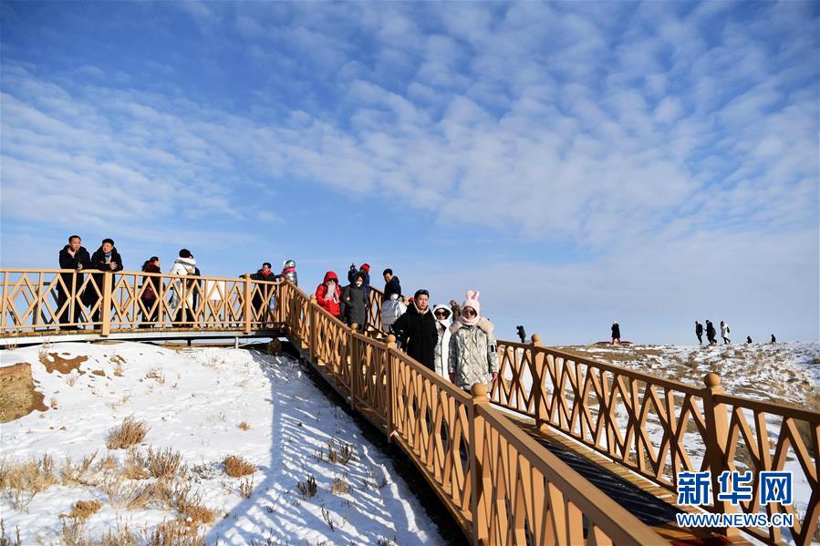 11月26日,來自全國百家旅行社的旅游業(yè)界人士在新疆福??h烏倫古湖海上魔鬼城景區(qū)參觀。新華社記者沙達(dá)提攝