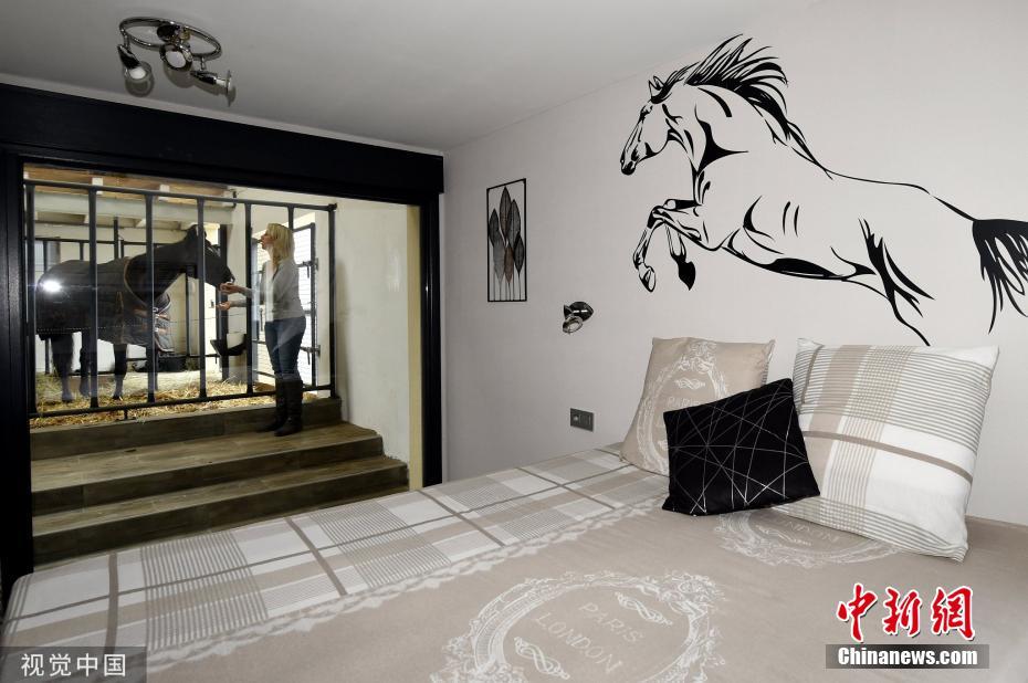 當(dāng)?shù)貢r(shí)間2019年11月25日,法國(guó)桑圖瓦地區(qū)弗賴斯內(nèi),一家特別的“酒店”開(kāi)張,入住者可以透過(guò)玻璃清楚的看到馬廄里的馬,還可以跟馬親密接觸。圖片來(lái)源:視覺(jué)中國(guó)