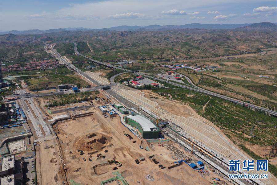 5月28日無人機拍攝的建設中的京張高鐵懷來站。新華社記者邢廣利攝