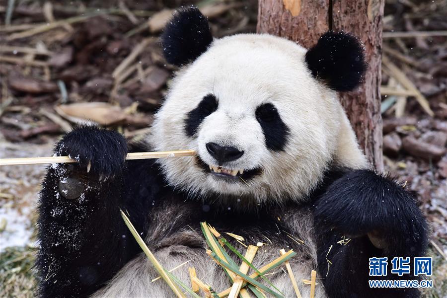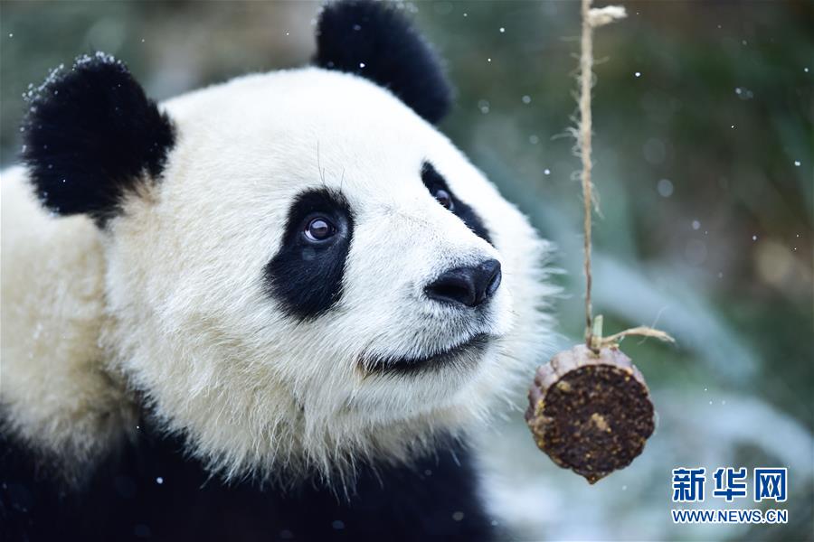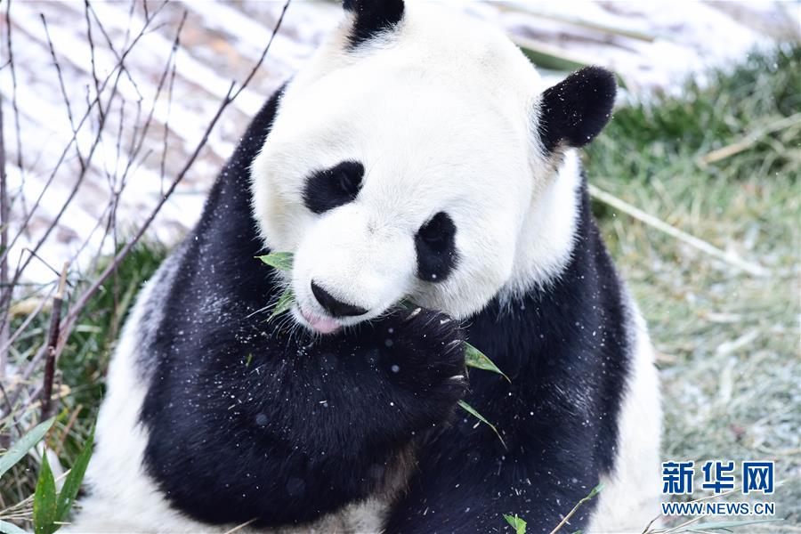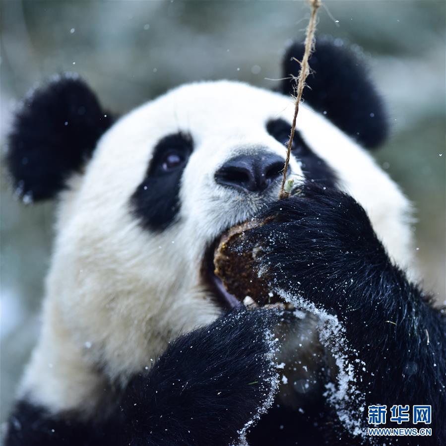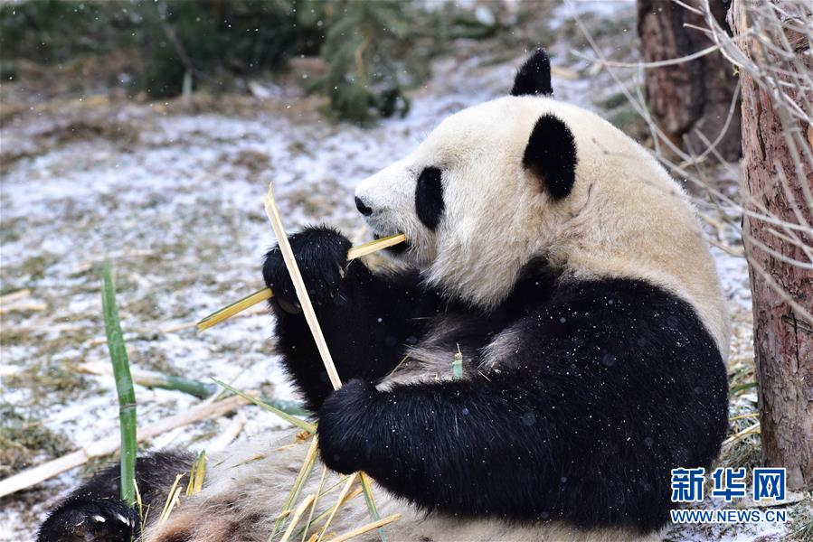 11月29日,在西寧熊貓館內(nèi),兩只大熊貓?jiān)诔灾褡印?當(dāng)日,青海省西寧市迎來(lái)降雪,西寧熊貓館四只“萌寵”大熊貓?jiān)谘┨炖锵硎苤灾褡拥臉?lè)趣。據(jù)了解,大熊貓生活的適宜溫度在26攝氏度至零下5攝氏度之間,冬季氣溫低于零下5攝氏度時(shí),場(chǎng)館會(huì)啟用保暖設(shè)施。 新華社記者 吳剛 攝