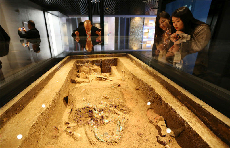 10月19日,參觀者在二里頭夏都遺址博物館內(nèi)參觀。新華社記者李安攝