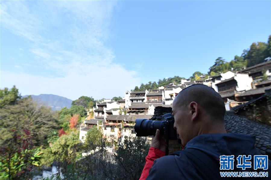 11月6日,鄉(xiāng)村攝影師曹加祥在篁嶺村采風。新華社記者胡晨歡攝