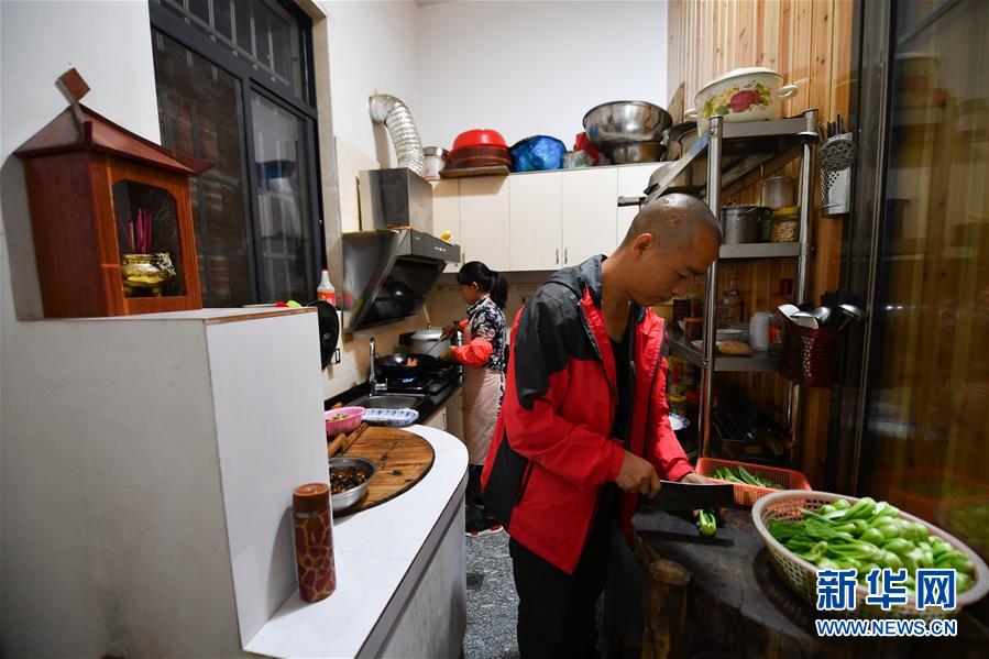 11月6日,鄉(xiāng)村攝影師曹加祥在自家的民宿內為游客準備晚餐。新華社記者胡晨歡攝