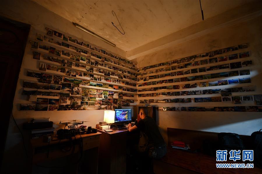 11月6日,鄉(xiāng)村攝影師曹加祥在篁嶺村自己的工作室內整理圖片。新華社記者胡晨歡攝