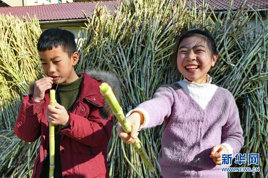 12月7日,松溪縣鄭墩鎮(zhèn)萬前村的小朋友在吃“百年蔗”。近期,福建省松溪縣鄭墩鎮(zhèn)萬前村特色甘蔗品種“百年蔗”進入采收期,當?shù)剞r民砍蔗制糖,一派繁忙景象。近年來,萬前村大力發(fā)展蔗糖生產,帶動農民脫貧致富,目前全村種植“百年蔗”面積達420畝。新華社記者張國俊攝