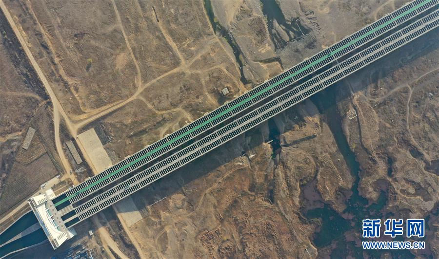 這是12月9日無人機(jī)拍攝的南水北調(diào)中線總干渠沙河渡槽工程。南水北調(diào)中線一期工程自2014年12月全面通水至今已5年,中線工程通水以來,工程運(yùn)行平穩(wěn),供水量逐年增加。據(jù)了解,位于河南省魯山縣境內(nèi)的沙河渡槽,單槽重量大、最大高度高,槽身空間受力復(fù)雜,架設(shè)難度極大。新華社記者馮大鵬攝
