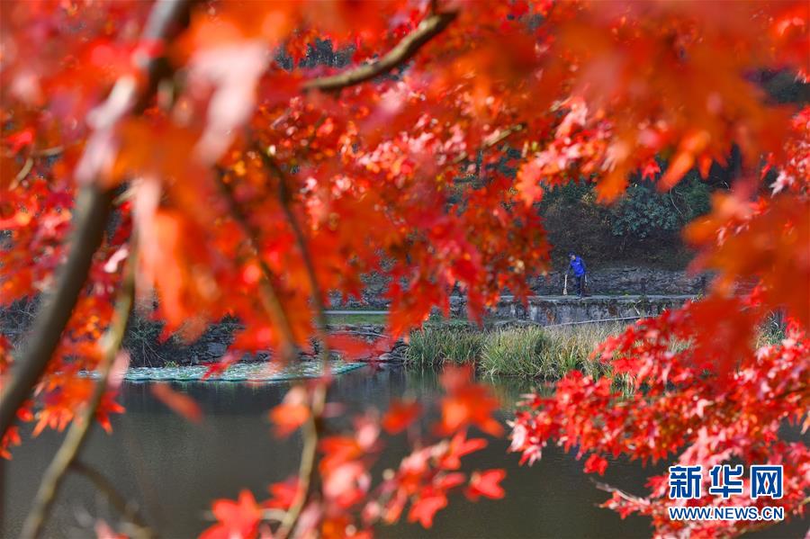 11月17日,游客在廬山如琴湖邊游玩。初冬時(shí)節(jié),江西廬山風(fēng)景區(qū)層林盡染,火紅的楓葉吸引眾多游客前來參觀,令人流連忘返。新華社記者胡晨歡攝