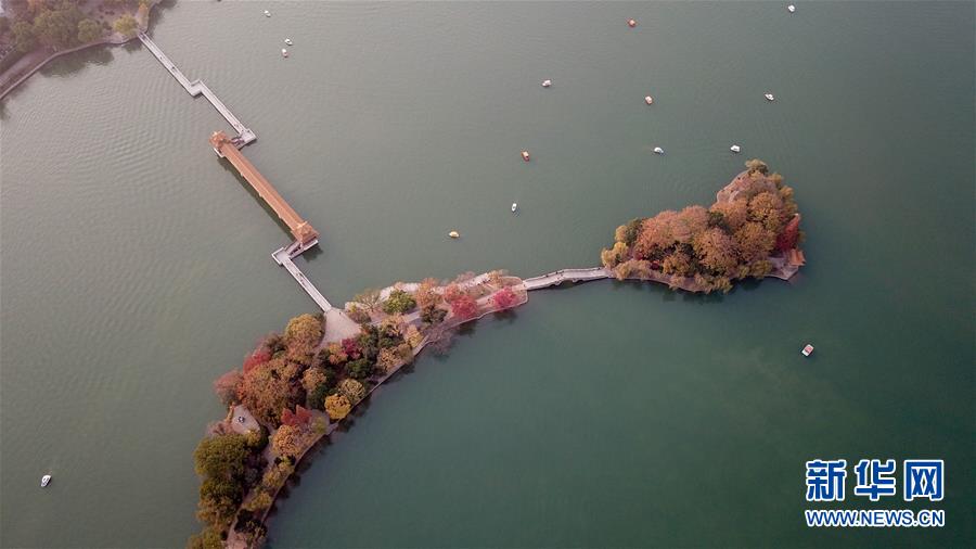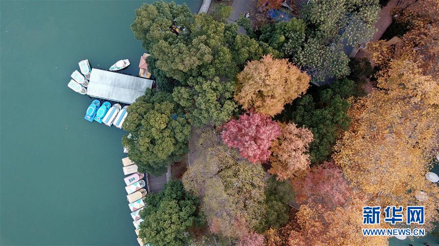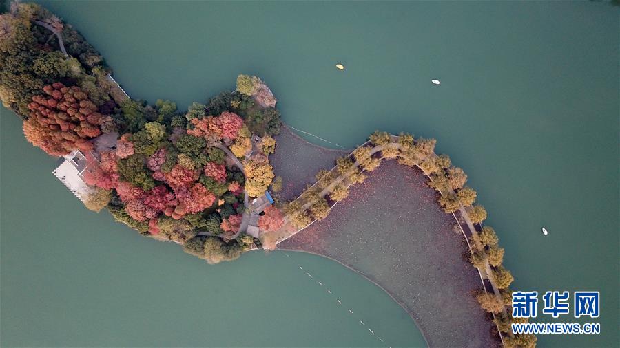 初冬時(shí)節(jié),位于湖南省長沙市開福區(qū)的湖南烈士公園年嘉湖畔暖陽照耀,色彩繽紛的樹葉與年嘉湖碧水構(gòu)成一幅美麗的冬日畫卷。
