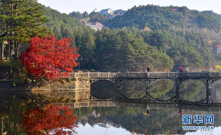 11月17日,游客在廬山如琴湖旁拍照。新華社記者張浩波攝