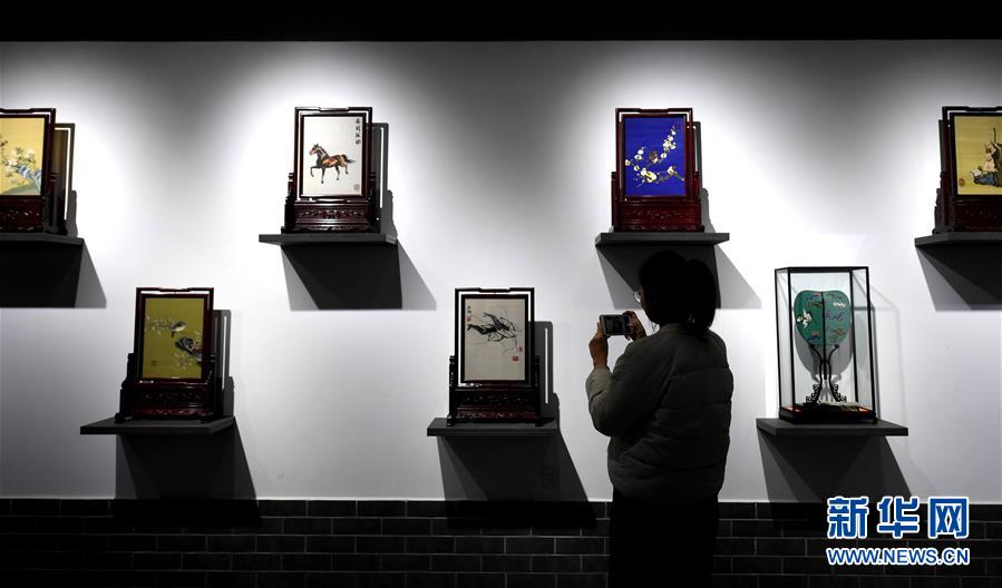 12月14日,游客在河北定州緙絲傳習基地參觀緙絲作品。 新華社記者 王曉 攝