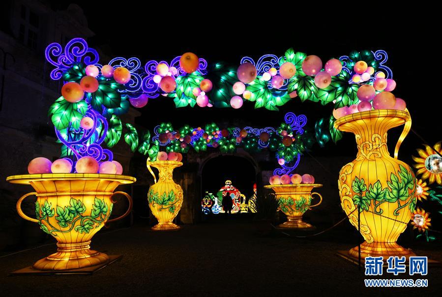 這是12月15日在法國謝爾河畔塞勒市的塞納古堡拍攝的中國彩燈。 首屆“塞納古堡彩燈嘉年華”活動日前在法國謝爾河畔塞勒市的塞納古堡開幕,39組造型別致、色彩鮮艷的自貢彩燈為有著千年歷史的塞納古堡披上了別樣的節(jié)日盛裝。“塞納古堡彩燈嘉年華”活動將一直持續(xù)到中國春節(jié)。新華社記者 高靜 攝