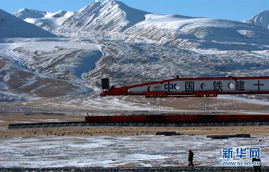 青藏鐵路在鋪軌建設中(2004年12月5日攝)。新華社記者覺果攝