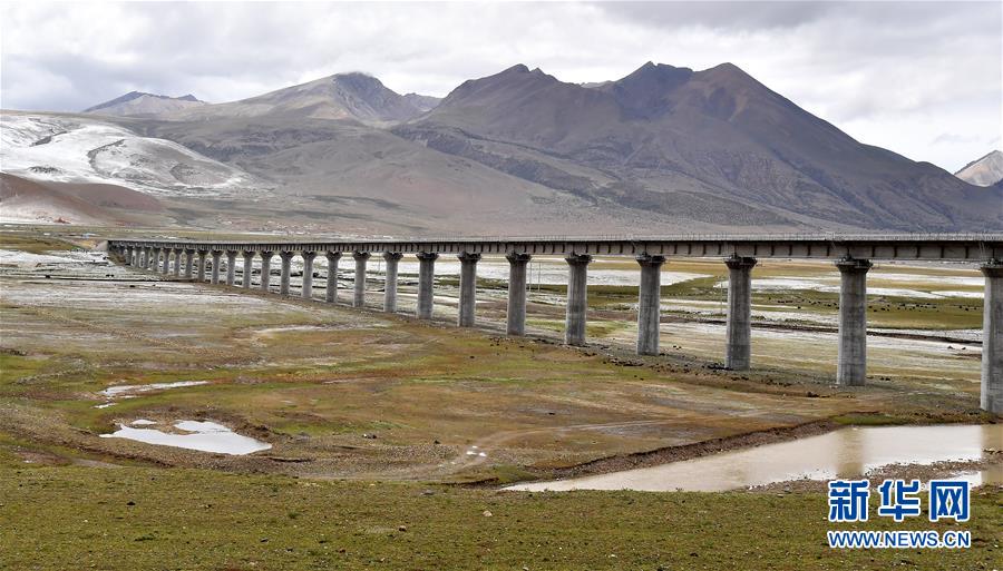 這是穿過一片濕地的青藏鐵路(6月10日攝)。新華社記者覺果攝