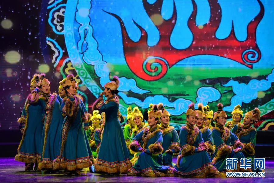 12月22日,演員在表演舞蹈《達(dá)斡爾民間呼號表演》。 新華社記者 徐欽 攝