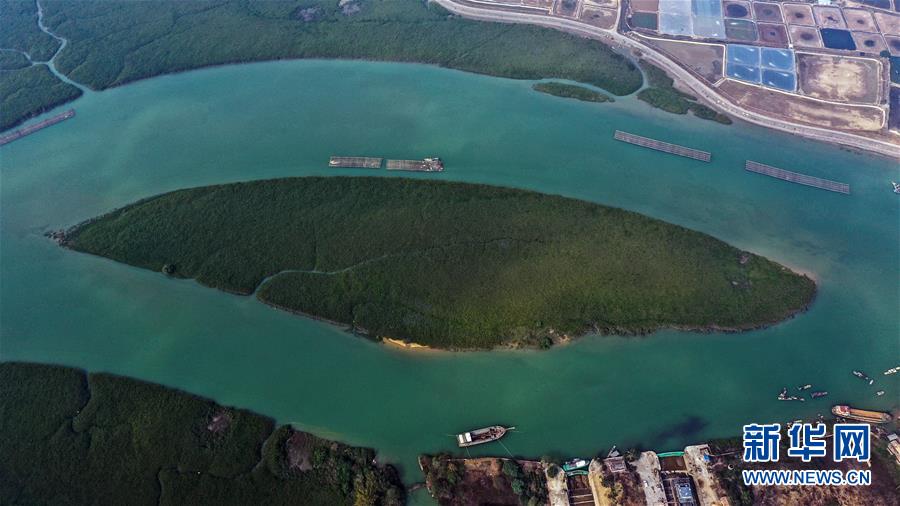 12月21日無人機拍攝的廣西合浦縣黨江鎮(zhèn)更螺圍出??谝痪?。冬日,廣西廉州灣海域風光別致。新華社記者張愛林攝