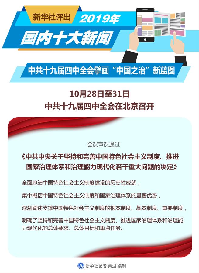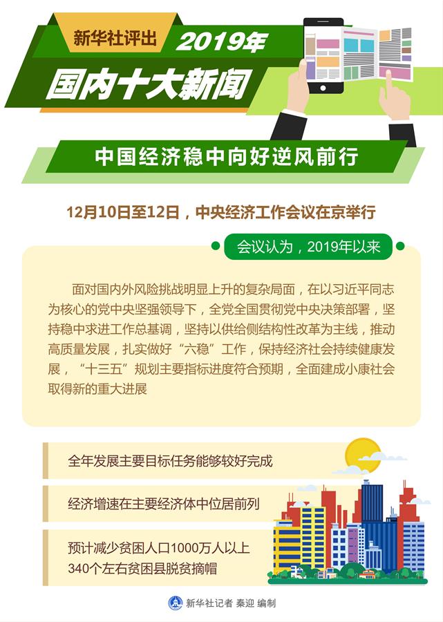 圖表:新華社評(píng)出2019年國內(nèi)十大新聞 新華社記者 秦迎 編制
