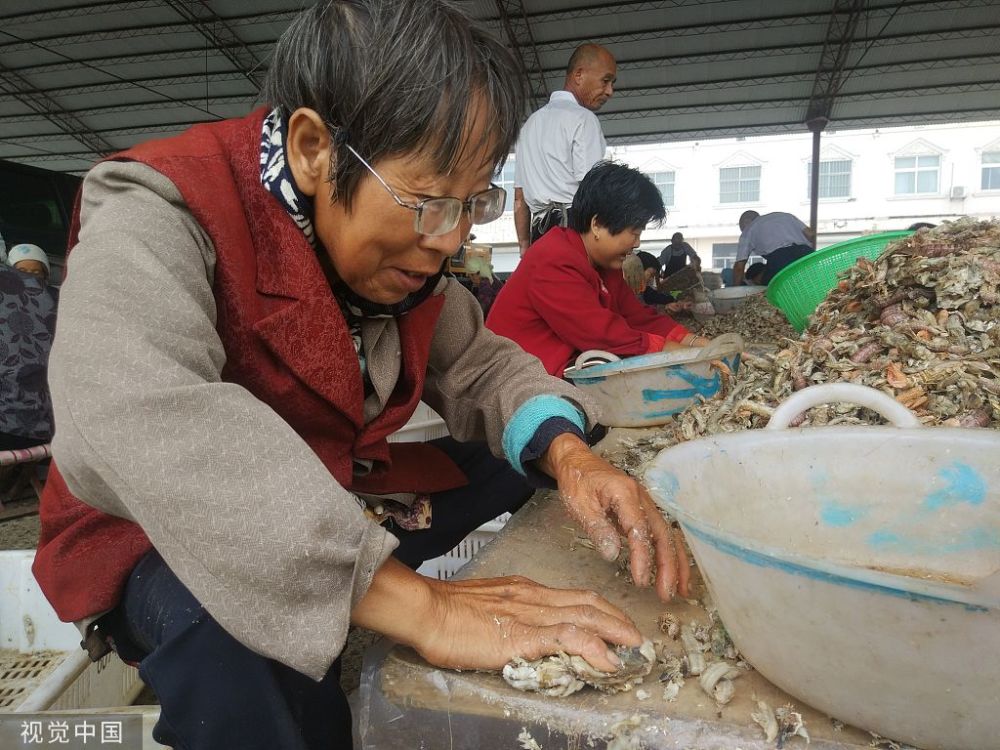 海產(chǎn)豐收的季節(jié)還催生了當(dāng)?shù)鬲毺氐墓しN,這就是分揀工,不少農(nóng)村人在這里靠著分揀海產(chǎn)日賺幾十元。