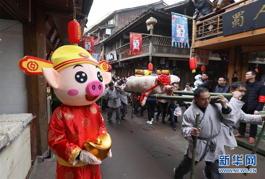 當(dāng)日,一年一度的四川省雅安市“年豬節(jié)”在雅安市雨城區(qū)上里古鎮(zhèn)開幕,抬年豬巡游、民俗文藝演出、年豬宴等活動吸引了全國各地游客前來觀賞體驗。雅安“年豬節(jié)”由傳統(tǒng)的農(nóng)家過新年、殺年豬、看大戲等喜慶活動逐漸演變而來,自2005年開始舉辦,至今已舉辦了十四屆。