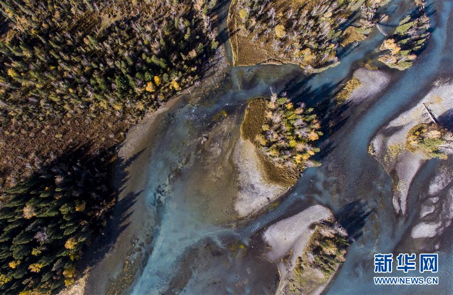 9月25日無人機(jī)拍攝的喀納斯景區(qū)風(fēng)光。新華社記者王菲攝