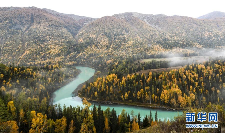 9月23日拍攝的喀納斯景區(qū)風(fēng)光。新華社記者王菲攝