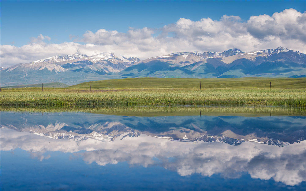 2019年7月11日,新疆巴音郭楞獨(dú)庫公路邊的天山倒影。黃光浩/視覺中國