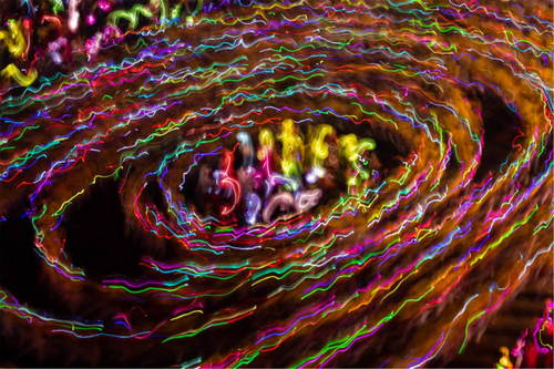 2019年5月28日, 參觀者在貴州省貴陽市舉辦的2019中國國際大數(shù)據(jù)產(chǎn)業(yè)博覽會“追夢·未來”數(shù)字藝術(shù)特展上觀看和體驗藝術(shù)作品《宇宙深空》。新華社記者楊文斌攝