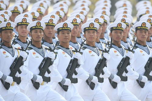 2019年10月1日,慶祝中華人民共和國成立70周年大會在北京天安門廣場隆重舉行。這是海軍方隊(duì)接受檢閱。新華社記者劉大偉攝