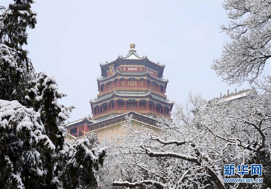 1月6日拍攝的頤和園佛香閣雪景。1月5日晚,北京迎來2020年首場降雪。雪后的頤和園景色迷人,宛若畫卷。新華社記者陳建力攝