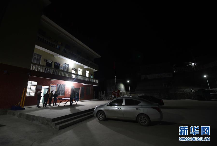 八好村駐村第一書記韋德王和同事在辦公樓外商量扶貧相關(guān)事宜(2019年12月16日攝)。新華社記者黃孝邦攝