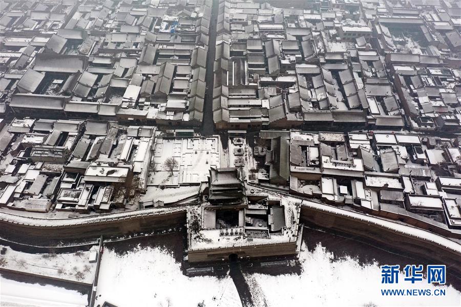 當日,山西省平遙縣迎來降雪,雪中的平遙古城銀裝素裹,美景如畫。平遙古城是目前中國保存最完整的古代縣級城池之一,1997年被列入世界文化遺產(chǎn)名錄。