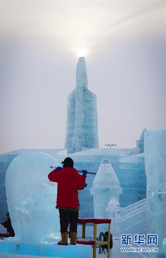1月6日,參賽者在創(chuàng)作冰雕。新華社記者王松攝