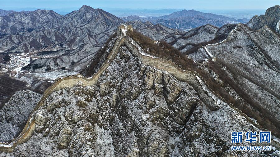 這是1月7日拍攝的北京箭扣長城雪景(無人機照片)。 新華社記者 陳曄華 攝