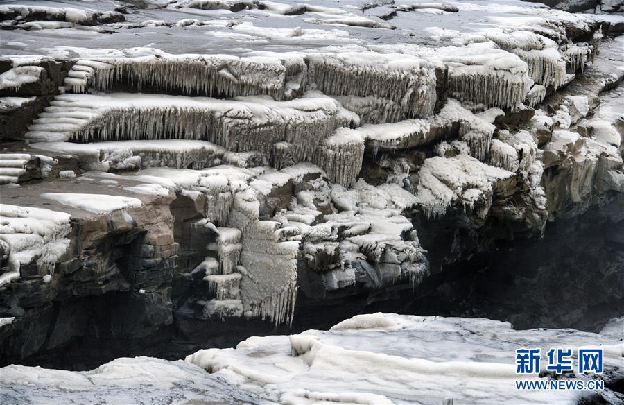 1月12日在陜西黃河壺口瀑布景區(qū)拍攝的“冰峰倒掛”景觀。新華社發(fā)(蘭華攝)