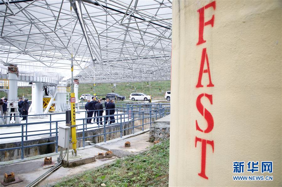 1月11日,專家學者對“中國天眼”進行考察(檢修期間拍攝)。新華社記者歐東衢攝