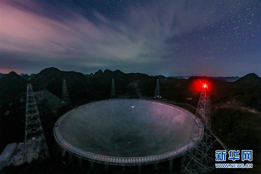 8月27日拍攝的星空下的“中國天眼”。新華社記者歐東衢攝
