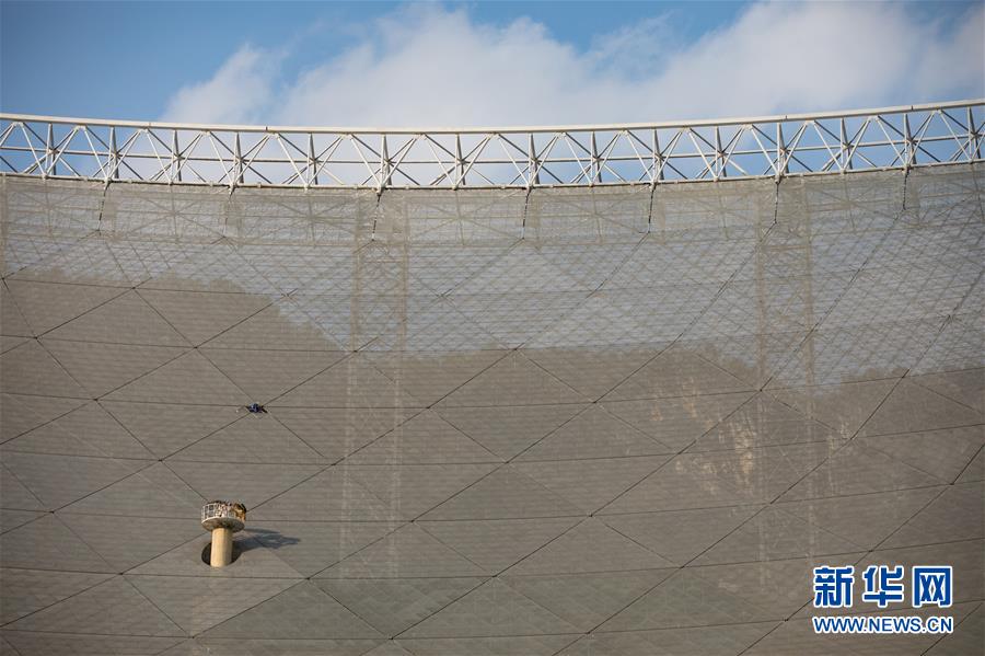 1月9日拍攝的“中國天眼”反射面板(檢修期間拍攝)。新華社記者劉續(xù)攝