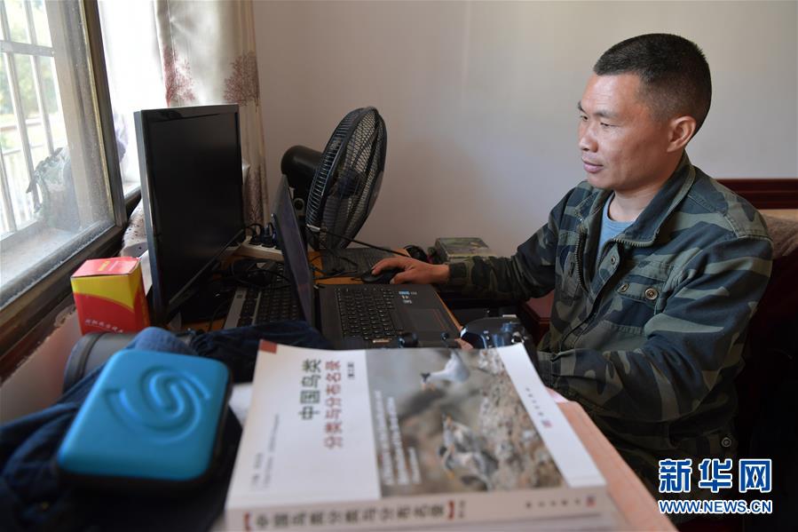 在江西九連山國家級自然保護區(qū)潤洞保護站,陳志高在電腦上查看拍攝的照片(1月8日攝)。新華社記者 彭昭之 攝