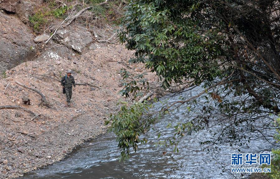 在江西九連山國(guó)家級(jí)自然保護(hù)區(qū),陳志高帶著他的相機(jī)準(zhǔn)備過(guò)一條小河進(jìn)入密林深處拍攝鳥類(1月8日攝)。新華社記者 彭昭之 攝