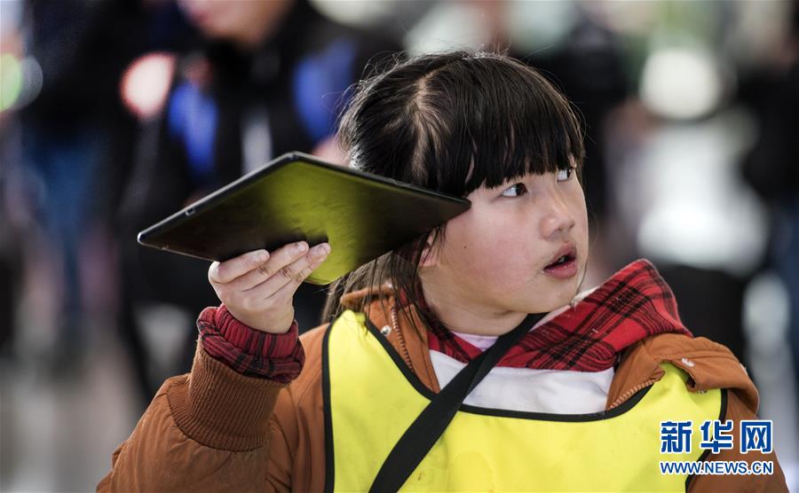 1月14日,一位小朋友在西安北站候車大廳與家人通話。路再遠(yuǎn)、再艱辛,也擋不住回家的腳步。在西安北站的每一個(gè)角落,處處充滿溫情和歸鄉(xiāng)的盼望。連日來,西安北站日均發(fā)送旅客12.1萬人次,一列列春運(yùn)的列車,載著中國(guó)人的鄉(xiāng)愁,駛向遠(yuǎn)方。新華社記者陶明攝