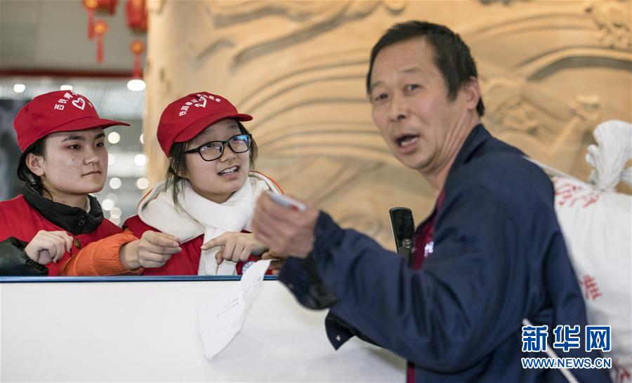 1月14日,西安北站客運(yùn)員吉如(右一)在引導(dǎo)旅客。路再遠(yuǎn)、再艱辛,也擋不住回家的腳步。在西安北站的每一個(gè)角落,處處充滿溫情和歸鄉(xiāng)的盼望。連日來,西安北站日均發(fā)送旅客12.1萬人次,一列列春運(yùn)的列車,載著中國(guó)人的鄉(xiāng)愁,駛向遠(yuǎn)方。新華社記者陶明攝